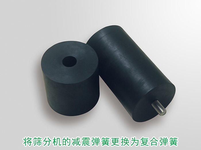 可將篩分機的減震彈簧更換為符合彈簧,復合彈簧具有高強度的阻尼,可有效限制共振區區域減緩共振時間降低整個篩分設備振動頻率的功效。